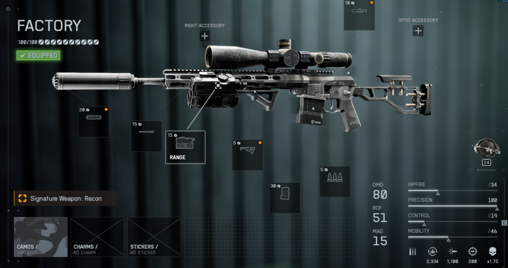 ESRより100速い弾速1100・ESRから2割増しの発射レート・装弾10発または拡張15発/20発の大容量マガジン・他より50ms速い200msの爆速ADS・まさかのADSボルト内臓と、砂に求める全てを詰め込んだ銃。ADSボルト不要で浮いたポイントで、サプ砂が余裕で成立する。強いけど、なんかこう...見た目が異常にダサいのは致命的な欠点。