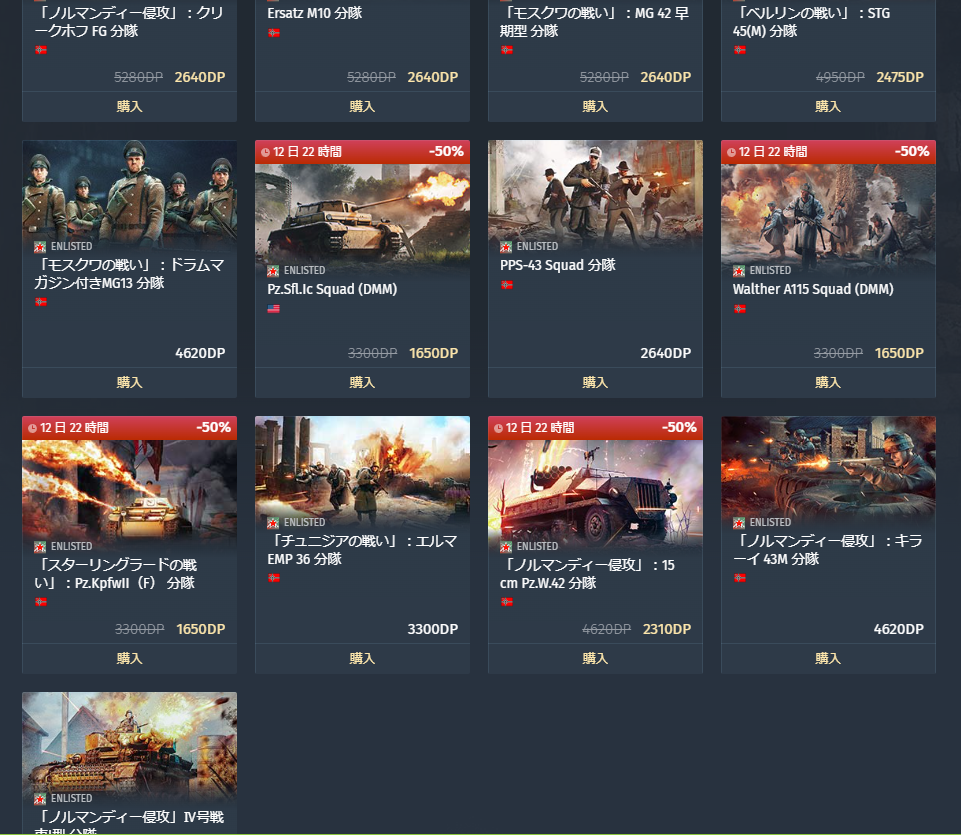 steam版だとEnlistedの公式サイトで買えるものが並んでるだけな気がします