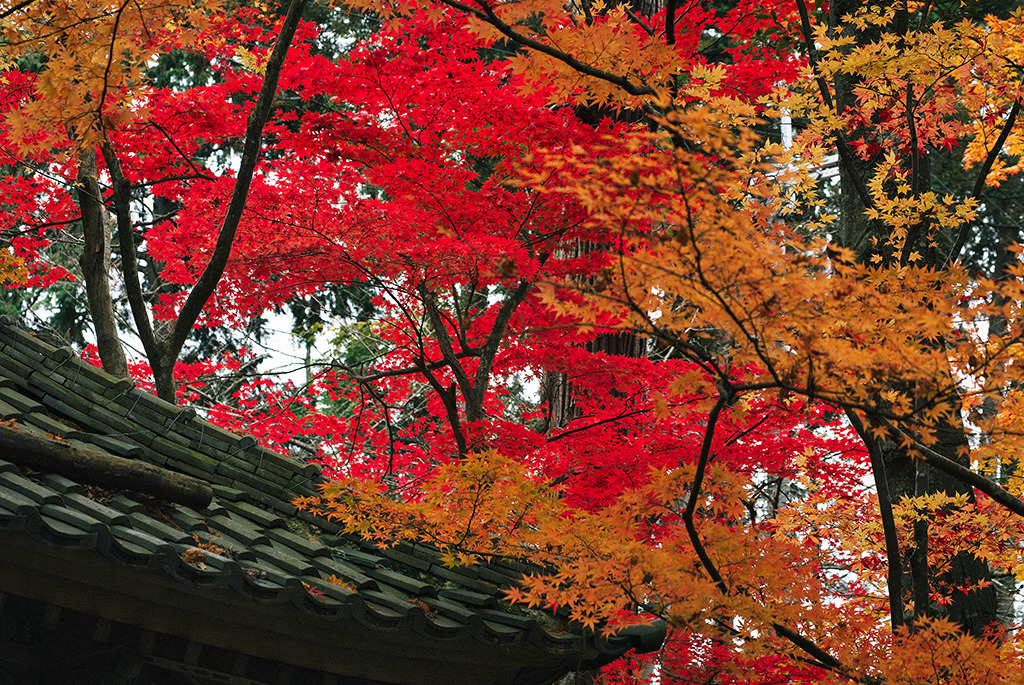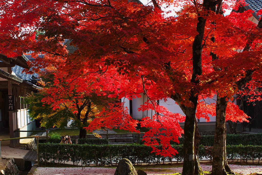 ところが、湖東三山の金剛輪寺に血染めの紅葉と呼ばれる真っ赤に色づく紅葉があります。