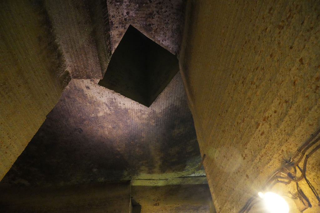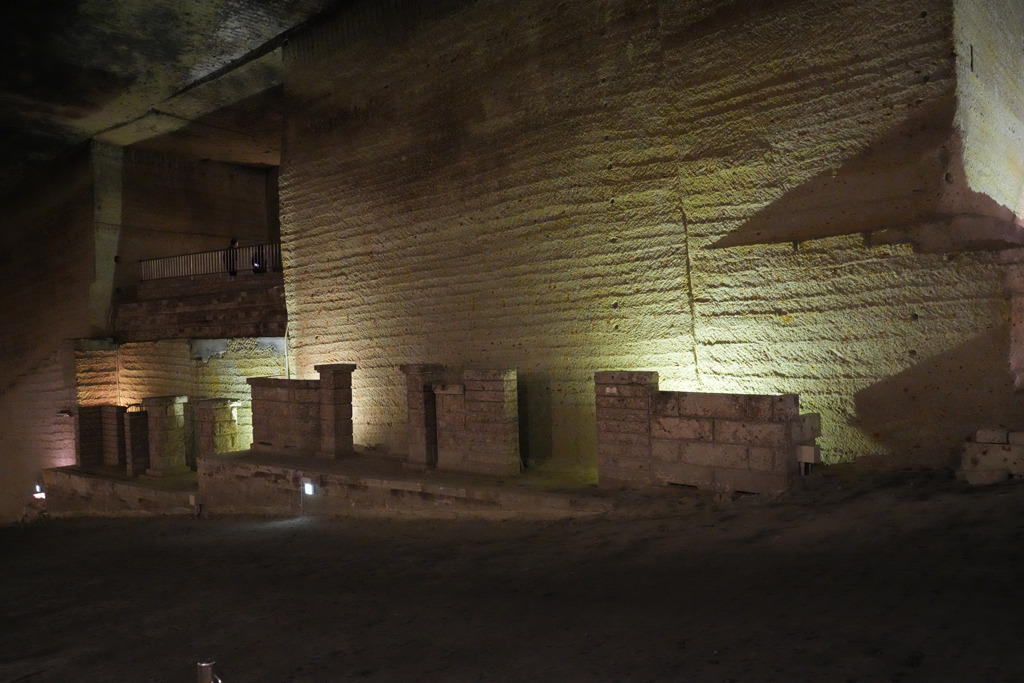 この日の外気温は30℃超えの真夏日でしたが、地下空間の温度は11℃でした。 年平均温度は7℃だそうで、天然の冷蔵庫としても利用されて来たそうです。