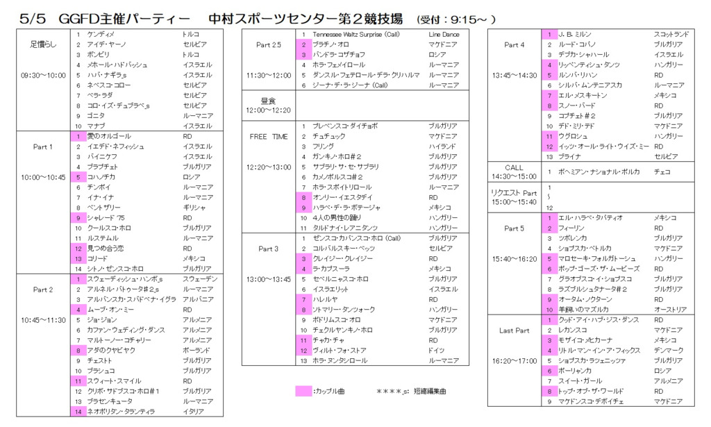 日頃GG例会で踊られている曲を中心に多くの曲を広い会場で 思いっきり踊りたいと思っています。