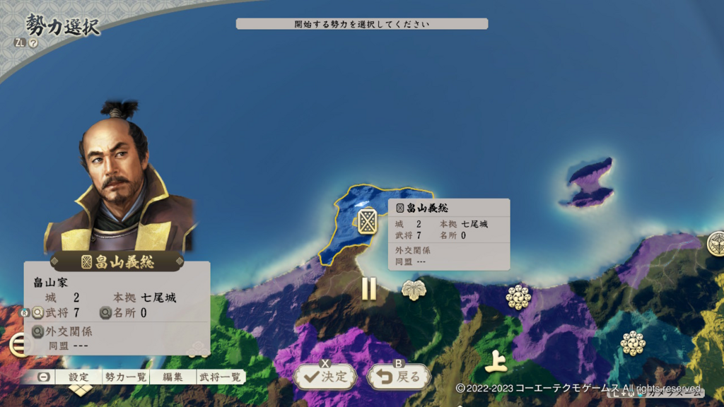 とりあえず、能登・越中・加賀三国を支配するのが第一目標かな。