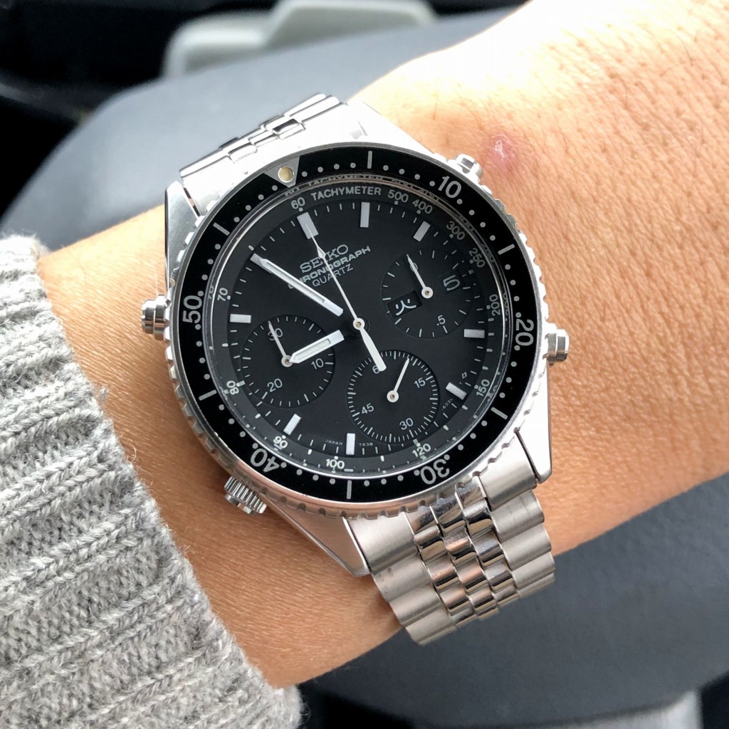 7a38かっこいいですね。市販されたセイコーのクォーツクロノの中では1番の高値で売れるモデルなのでしょうか!?ベルトが一寸短い気もしますが・・・レアカラーのダイヤルかチタンケースでしたらもっと高値になりましたね。