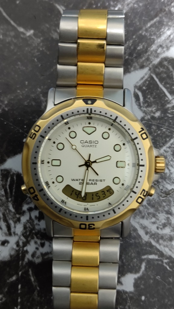 カシオといえば、チープカシオとかG-SHOCKのイメージがありますが、カシオジェナスのダイバータイプのアナデジはなかなかレアだと思います。