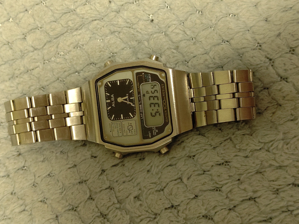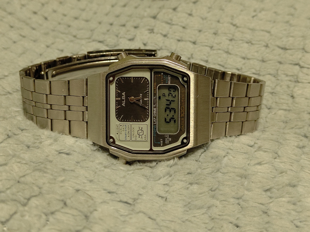 セイコーアルバツインのVP032Bです。2022年12月にメルカリで入手し、電池交換しても動かず、地元の小さな時計店でドナーを手に入れて再生して現在に至ります。デジアナ時計の名機と名高いシチズンデジアナよりも希少性が高いと思います。