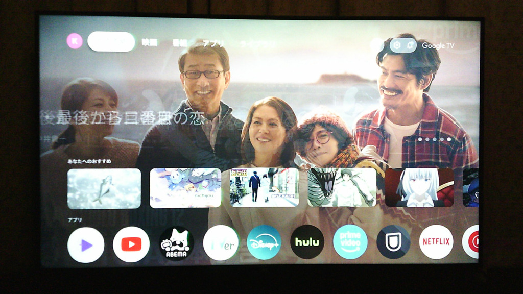 下段のアプリの左から、メディアプレイヤー/YouTube/ABEMA/TVer/...