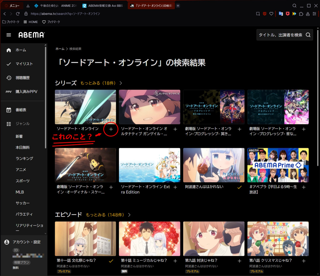 【追記】「どがれこ」のブラウズで検索した場合も+が出ませんでした。