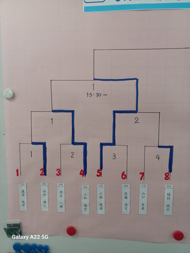 ⬆️準々決勝終了 ⬇️準決勝の組み合わせ 小松VS小林、高木VS鈴木