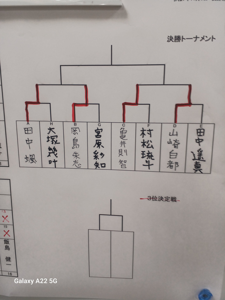 A級準決勝の結果 ○鈴木VS坂口● ○高橋VS土屋●