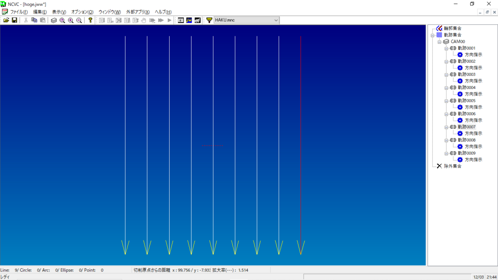 ちょっとよくわからないので勝手に解釈してますが,形状認識処理からの方向指示でできませんかね~? やり方は『いまからはじめるNC工作 第2版』のp.109から書いているのでご参考に. 一応サンプルデータを作ってみたので,画像だけ添付しておきます.