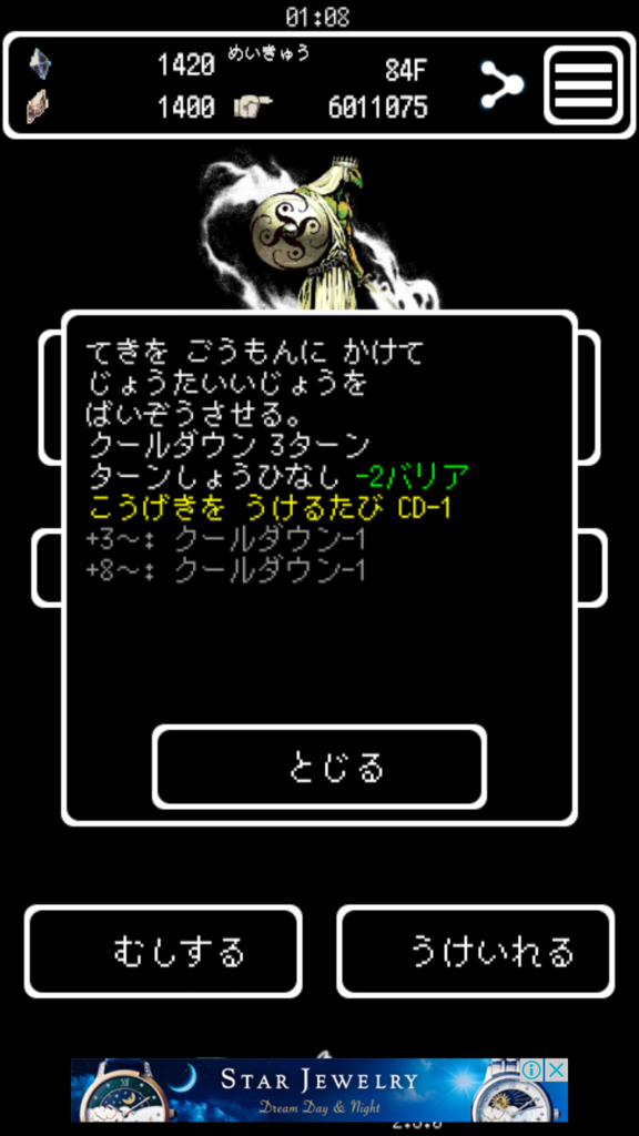 2.5.0でスキル追加されてる? 1056Fにて「しょうてん」「てんに おくりかえす しんばつのいちげき。いりょく 1000 じしんのHPいぞん 3ターン クールダウン 8ターン +3~:ターンたんしゅく +8~:ターンたんしゅく」が出てきた