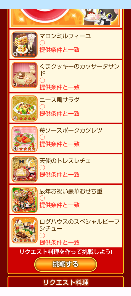 おはようございます。シクレ②のロイヤルキャッツアジアンカレーセットは発動しませんでした。スクショが撮れてないのですみません!
