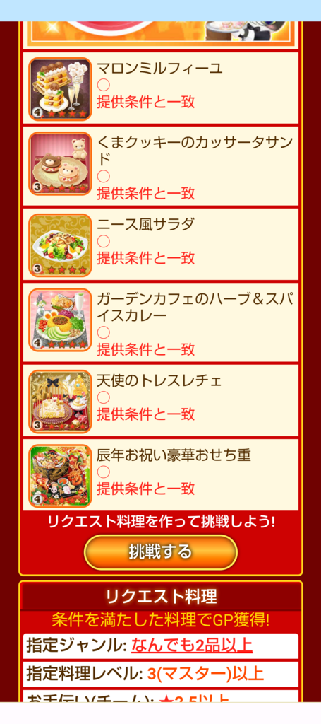 海の宝箱迎春おせちがOKとの事だったので、それに合わせて他手持ちの「ガチャ④食事」12品出してみた(メインの定義がよくわからなかった…)のですが全部NGでした😅