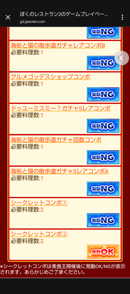 シークレットコンボ2垢で調べたまとめ ①釜飯駅弁、能登丼→OK ②ひまわりオッソブーコ→OK ボタニカルガーデンサラダピザ、ロイヤルキャッツバーニャカウダ、ライムクリームペンネ→NG