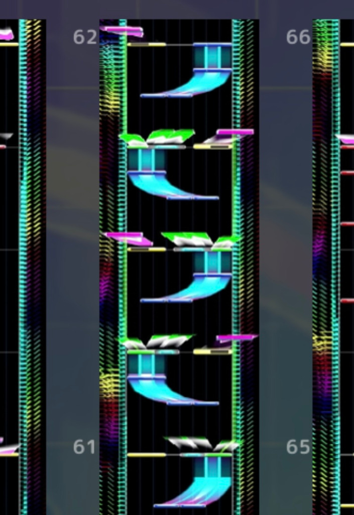 譜面確認動画視点だと簡単に見える現象、多分ノーツがゆっくり流れる関係上普通にプレイする時よりも譜面がくっきり見えて運指の道筋が分かりやすくなるのが理由なのかなぁと(大半の人は壁なしハイスピを9.0より速く設定しているため)