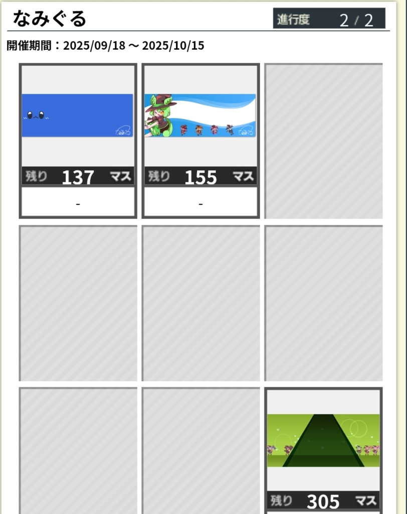 なみぐるMap進行度2は155マス.155マス.305マスです