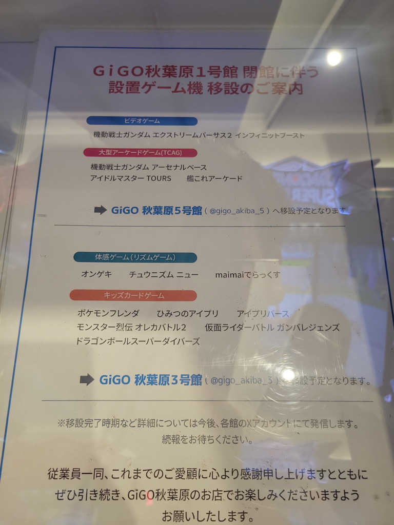 確認したのは今まであった5階のみなので他の階に移動していたらわかりませんが階ごとの紹介みたいなパネルに音ゲーコーナーが完全になくなっていたのでおそらく完全に消えたかと。