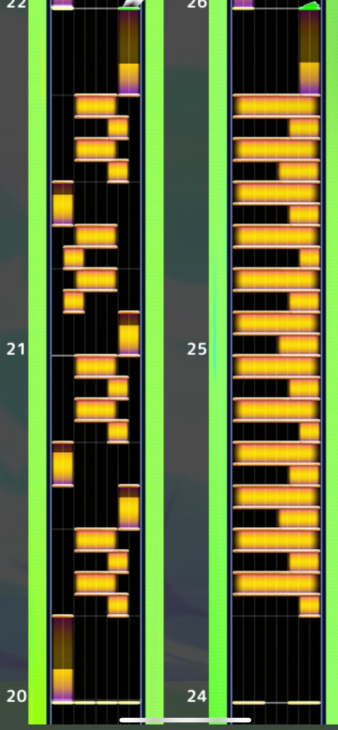 13+Radianceにあるホールドのトリル(特に画像右)が、ほぼ毎回20ミスとか出てろくにできないのですが原因はなんでしょうか… そもそもトリル自体、特にリズムがわかりづらいものにとても苦手意識があり、サドマミの序盤でアタ10を出すくらいには苦手です 自分で考えられる原因としては、タイミングがズレているか、ホールドをホールド出来ていないかだと思うのですが、自分でやってても全く分かりません… もしこういう意識だとやりやすい等ありましたら教えて頂きたいです。
