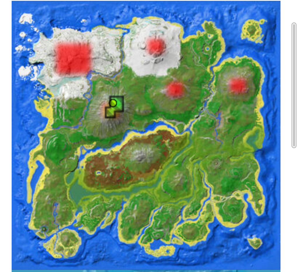 アイランドのリーシクはスポーンしないようになってるのでアルファもでませんね。あとリーシクの供物だけ無い!て時は管理人に連絡しましょう。 ギガノトのスポーンエリアはこんな感じみたいですね。たまに捕食しに下山しにいってることもあります。