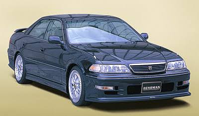 100系マークII Behrmanエアロ 湾岸ではフロントバンパーのウィンカーを外して、アンダー部分の張り出しを大きくした感じですネ。