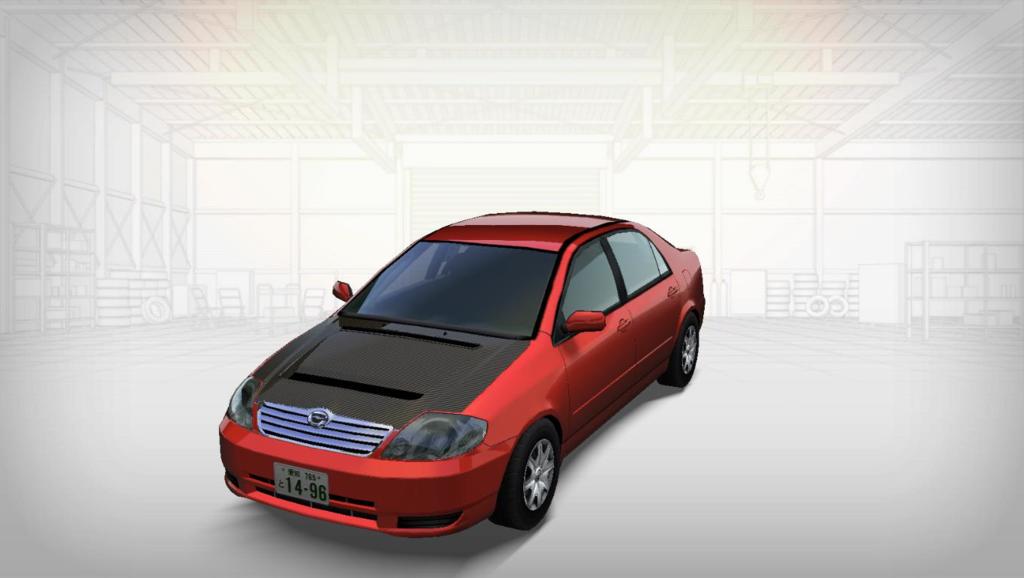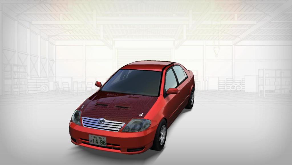 NZE121カローラのエアロF・G・H、FRPボンネットD、 カーボンボンネット1、ワークスステッカー(フロントのみ)です。