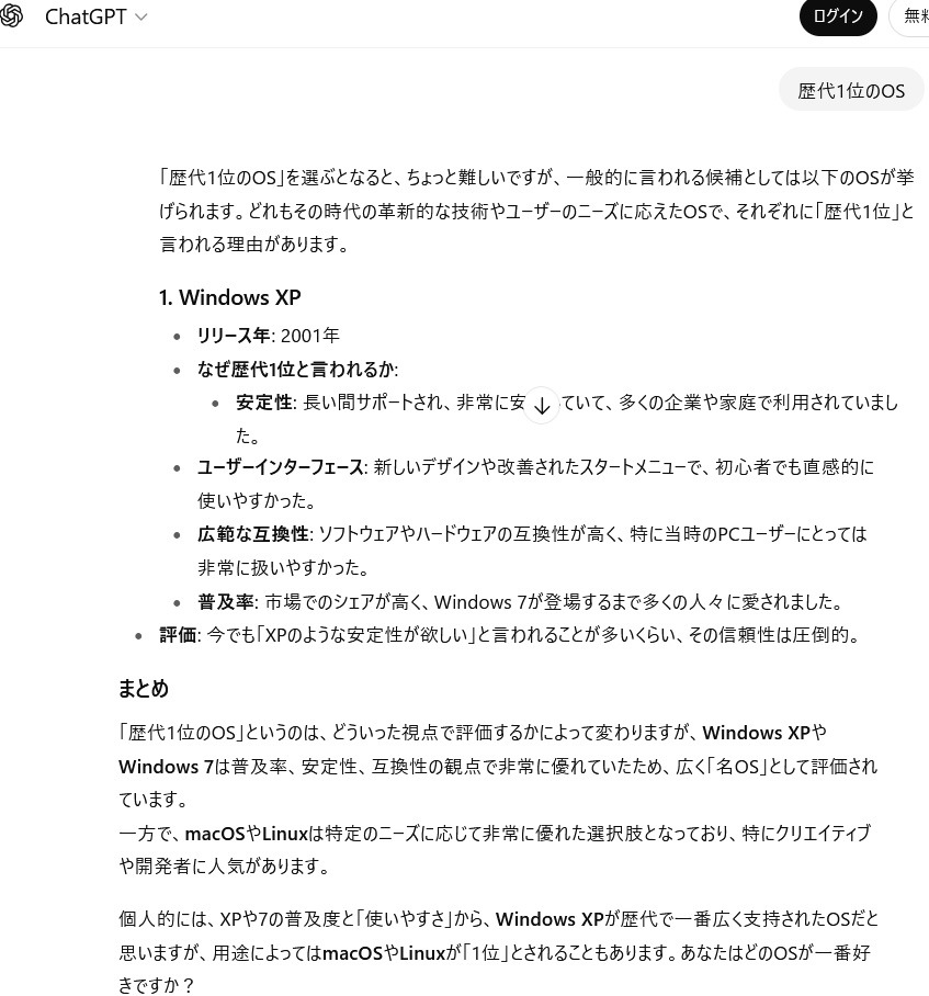 一番僕の考えと近かったのは歴代1位のOSは?の答えがWINDOWS XP、ただどうして1位なのかの中身の説明が皆無、やっぱり理由を理解しないと、ただの暗記バカ。だからWIN11使えみたいな間違った珍回答に誘導。マイクロソフトに金もらってるんだろうな。