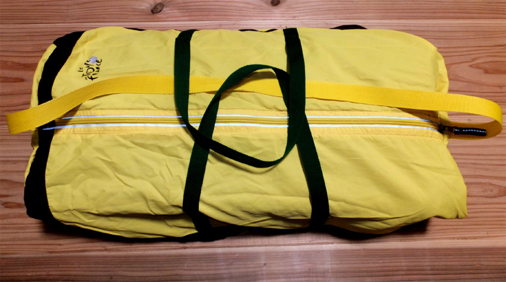 今日もまた余計なものをひとつ作ってしまった。世界でひとつのツールドフランスロゴ入りパラシュートバッグ。旅に出る時は重宝しそうです。