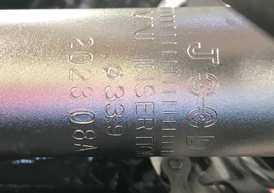 しかし、最初ぱっと見た時はメッキが文字に流れ込んで文字が潰れたと思っていたのですが、こうやって写真で拡大すると、最初から刻印自体が浅いようにも見えます(刻印する機械がヘタって擦り減ってるのか?単に打ち損なったのか?)