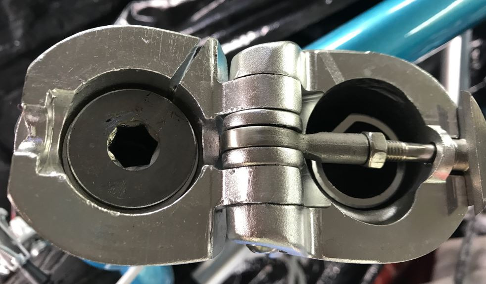 道場長の機体でトラブったハンドルステム折りたたみ部は今こんな感じです。