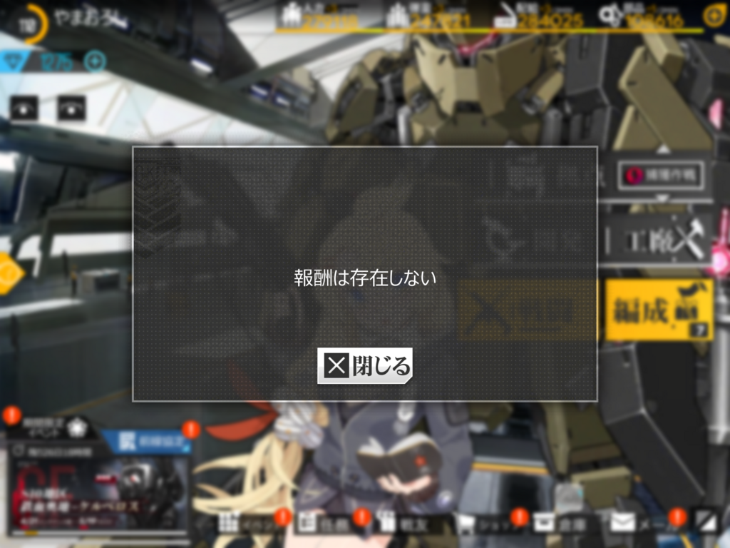 製造確率up来たから新装備ガン回ししたわ。新チップとかがある程度出来たのありがてぇ。代わりに更正やら強化やらで人員が50000切ったけど