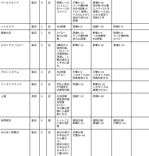 主に対カーバンクルやミノタウロス戦で用いられる。レベルアップ事にスキルリターンと同じ確率で使用可能。用途は少ないが、効果が強いため 変換スキル×15と交換可能