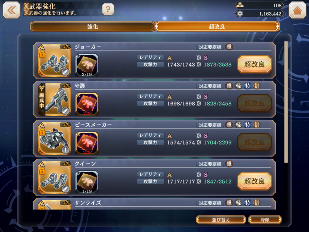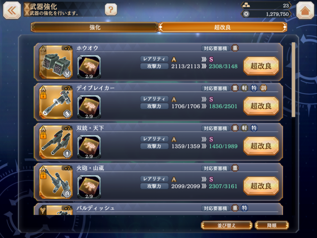 50レベル 設計図 B イシュタル B ゲートキーパー B パルチザン B 攻陣 B ヴァレ B ピースメーカー B 火砲・旋風