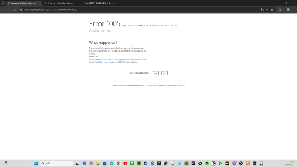 @e50c4d4660本日PCの方から本Wikiを使用しようとしたところIP ban?がされていてアクセスが不可の状態となっていました。banされるような心当たりも特にないのですが、原因はなにでしょうか?また対応いただくことは可能でしょうか?