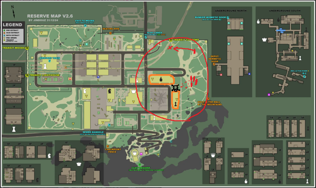 Glukhar達って兵舎湧きだとオレンジで囲った建物がボスエリアって表現されてるけど、