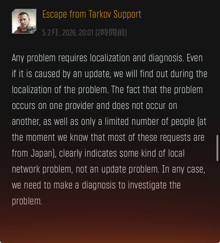 ごく僅かな日本人が不利益被ってる程度のことでアプデにケチつけんなだってさ。どうあってもお前の回線が悪いってことにしたいらしい。