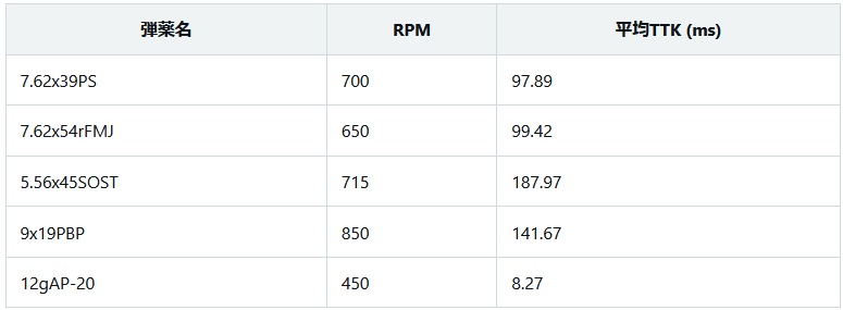TTK表作ってみた、SCOUT→ENFORCER(GranitBr4+Defender-2)とENFORCER→SCOUT(PRTCTR+OTV)
