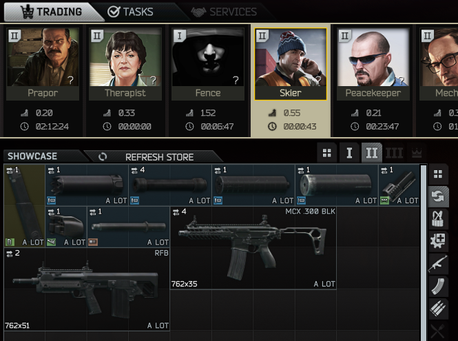 >ここでの購入品はEFT本編とPvEモードでも使用出来て、ワイプ後も維持される。(PvEでは衣服以外の報酬は含まない)