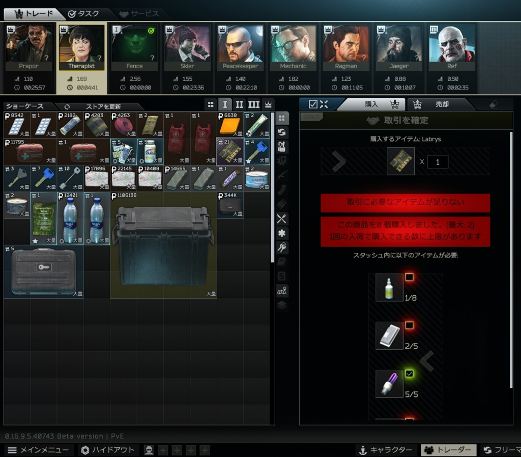 このタスクアイテムを持っている間はMira Aveから脱出不可な可能性あり(要検証)。現在3/3でフレアに成功していても狙撃されて脱出できない。