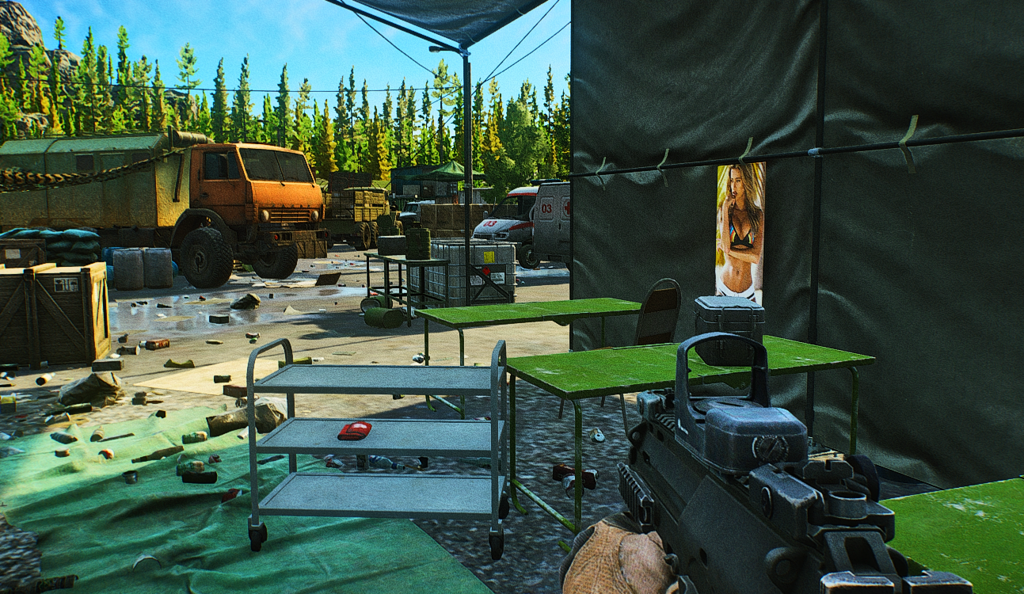 woods、マップ北東のタクシー前の村の北西の民家、真ん中の部屋の中