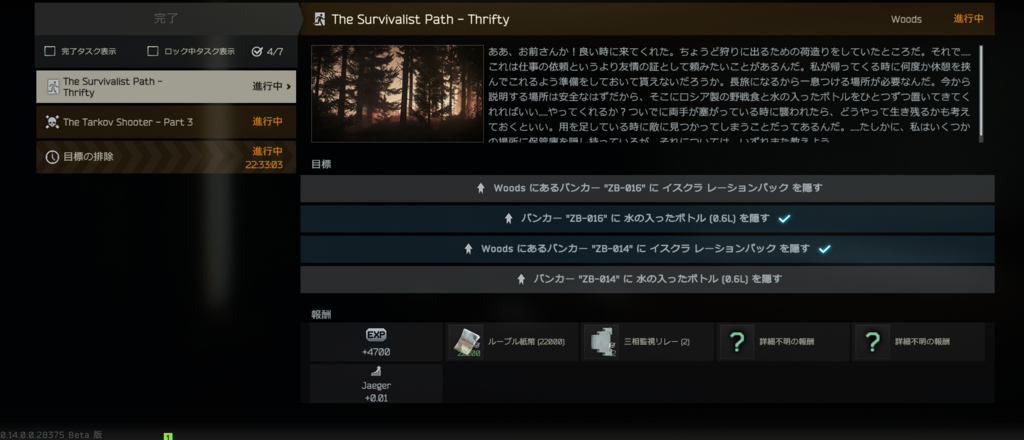 The survivalist path - Thriftyのトピック https://wikiwiki.jp/eft/Jaeger/The Survivalist Path - Thrifty