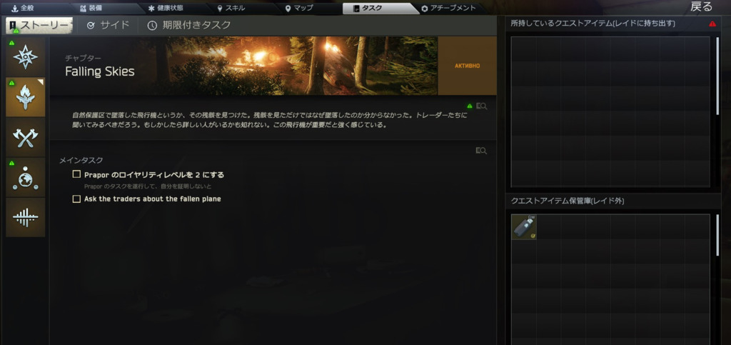ストーリータスク/Falling Skies https://wikiwiki.jp/eft/ストーリータスク/Falling Skies