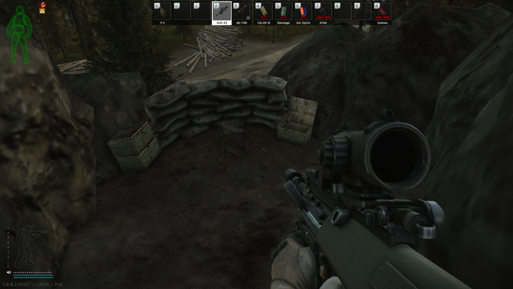 アミュレットはRyabina・リャビナ 前哨基地の道路側にあります。岩と岩の間なので見つけにくいですが、たぶん道路から土嚢が見えると思います。