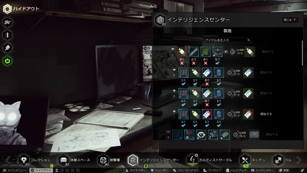 Factoryの医療テントの近くにある黄色い樽の上にある文書を回収→SoTの大通り、レクソスの横あたりに止まっている車の中にHDDがあるので回収してインテリセンターで解読→Factoryの地下のストレージルーム(カードキー部屋)に文書が2つ