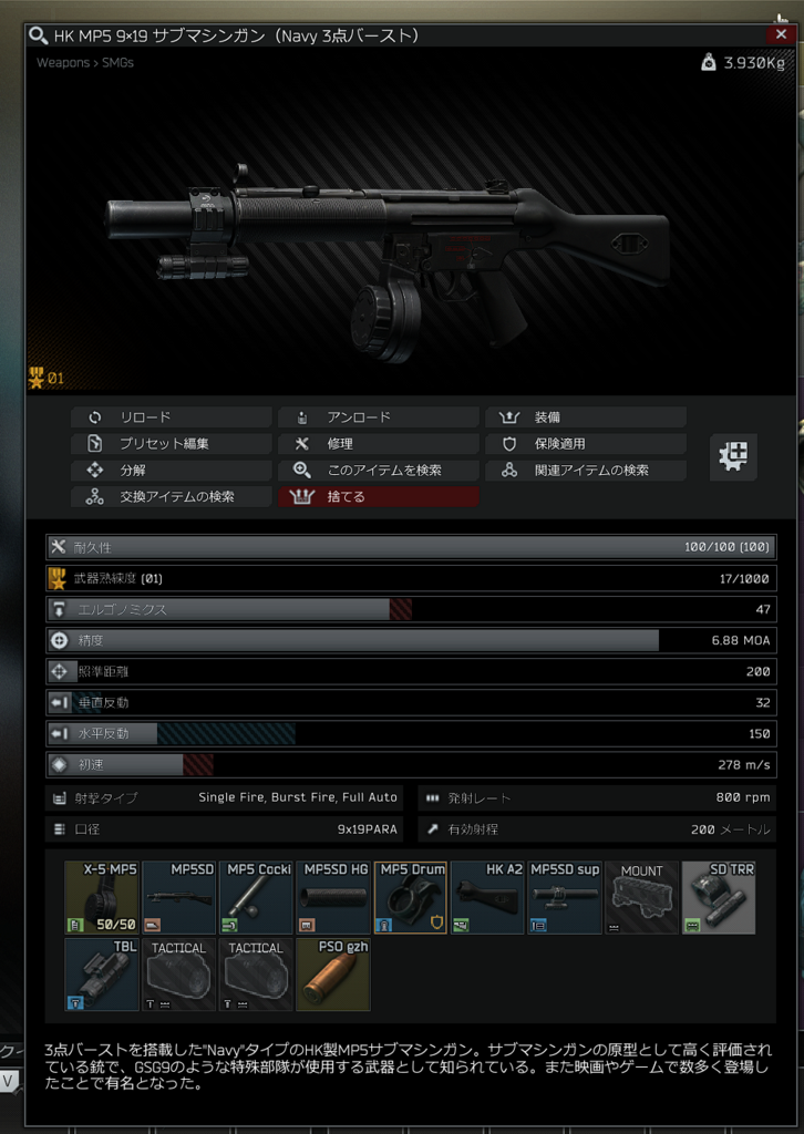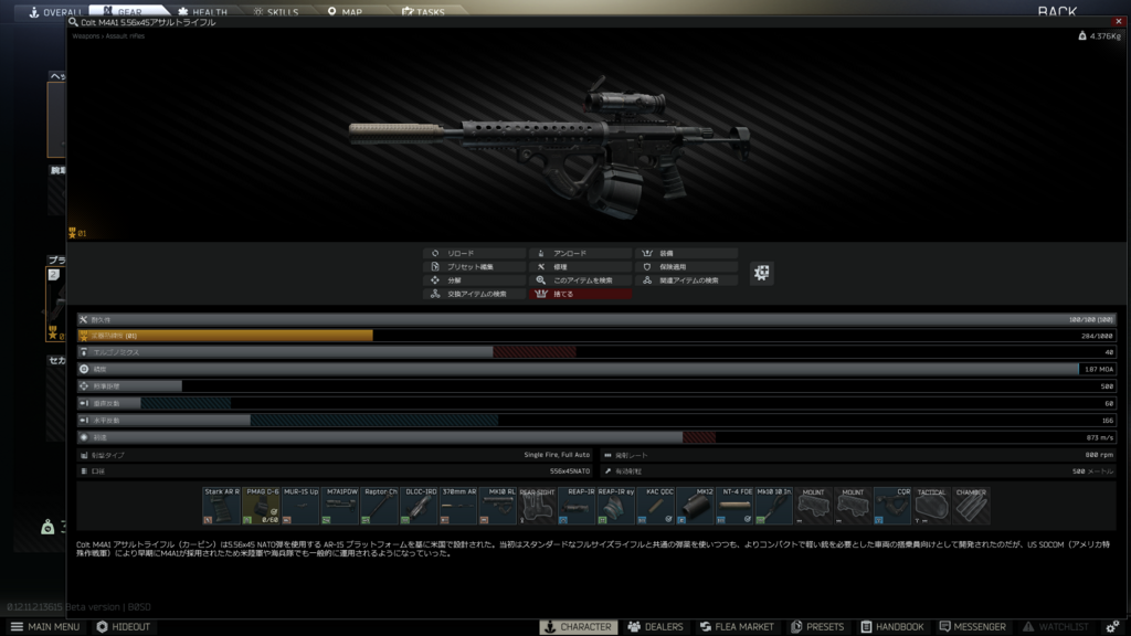 Gunsmith Part4 掲載例だと全く納品できないので注意。英字wiki見に行ったほうがいい。 ストックはDS150、サイレンサーはMONSTERじゃなくてMINI-MONSTER