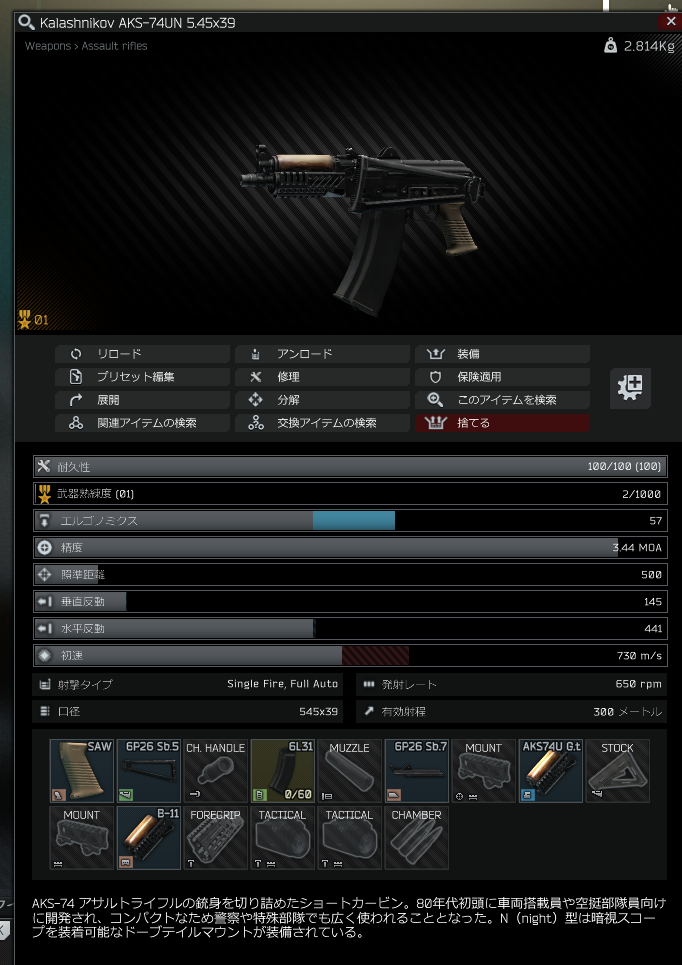 要求されているのは照準距離だけなので、有効射程は400のままで問題無いはずです。画像でも有効射程は400になっています。画像と同様の組み方をしても納品出来ないとなると、今一度、耐久値が著しく減っていないか?武器は“AKMN”で間違いないか?黒でなくグレーのパーツを使っていたりしないか?など見直してみて頂き、それでもなお納品出来なければ、画像を添付して頂けると原因、あるいは何かしらのバグを特定出来るかもしれません。