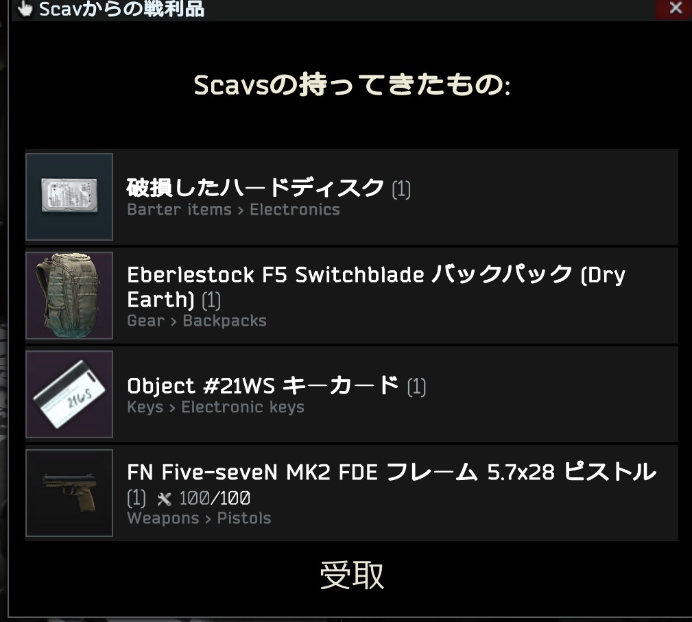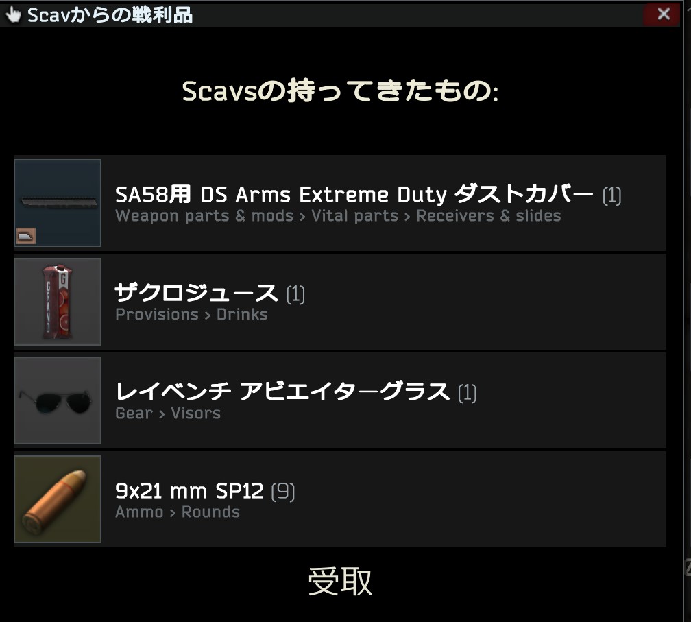 -「推奨しない例)4つ出たがレアなアイテム1つの名前だけ(ビットコインでました!、当たりはカードキーしかなかったです!!)複数候補があり判別できない(タバコでした!7.62mm弾!!)」だけではスカブケースのシステム情報の混乱や、アイテム名の判別、レア度、枠数と確率の観察と記録に悪影響を及ぼします。やめてください。