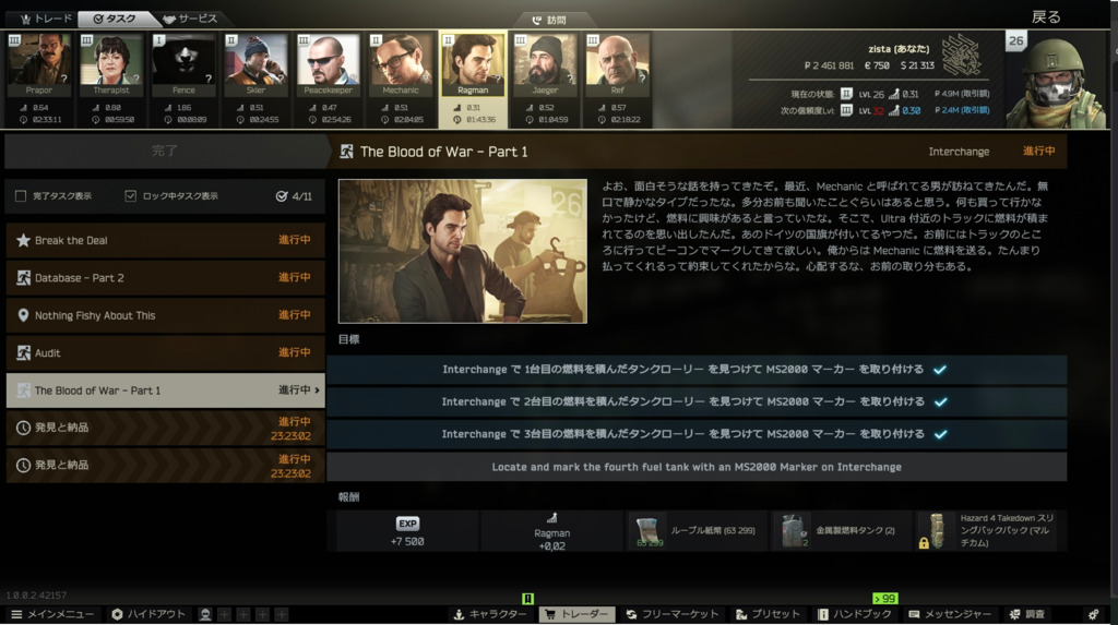 このタスクを完了するとタスクが大量に出る的な書かれ方してますけど、出てくるのは「Dressed to kill」と「A Fuel Matter」の2つだけでした