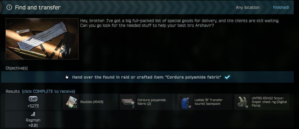 ラグマン「これ持って来いよ!これ報酬な!」自分「ありがとう!で、カバンとベストを君に売りたいんだけどいくらになる?」