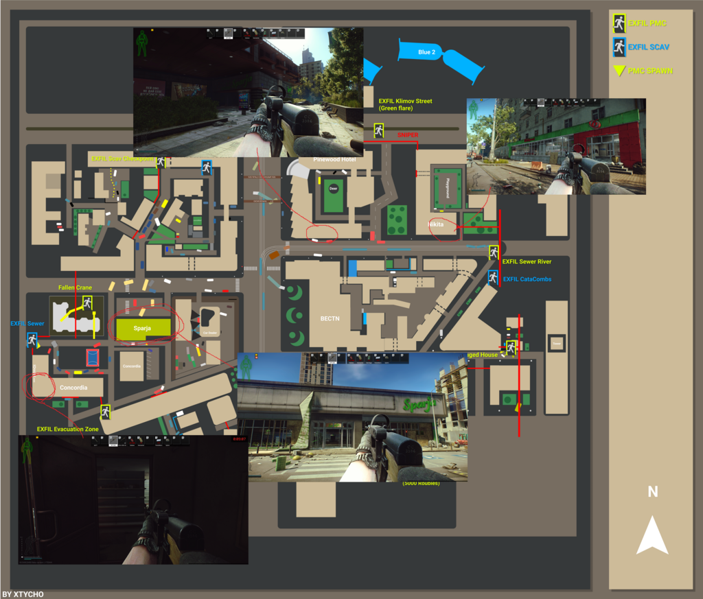 Shestyorochka store at Nikitskaya street→Pinewood hotelの東にある建物群の大通りに面していて一番東にある赤い看板の店 Sparja store at Pinewood hotel→Pinewood hotelの南側の大通りに面した側に緑色のSparjaの看板がある建物内 Sparja store at Primorsky ave→map内南西に表記のあるSparjaの建物 Goshan store in Concordia→map内南西のConcordiaの一番南西の建物の一階(一番判り辛い)