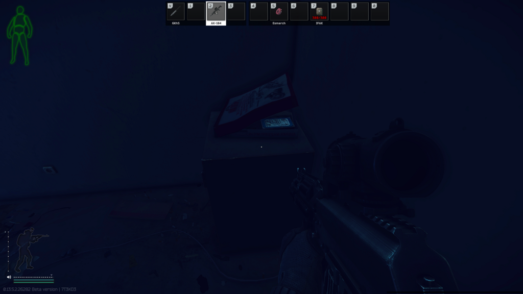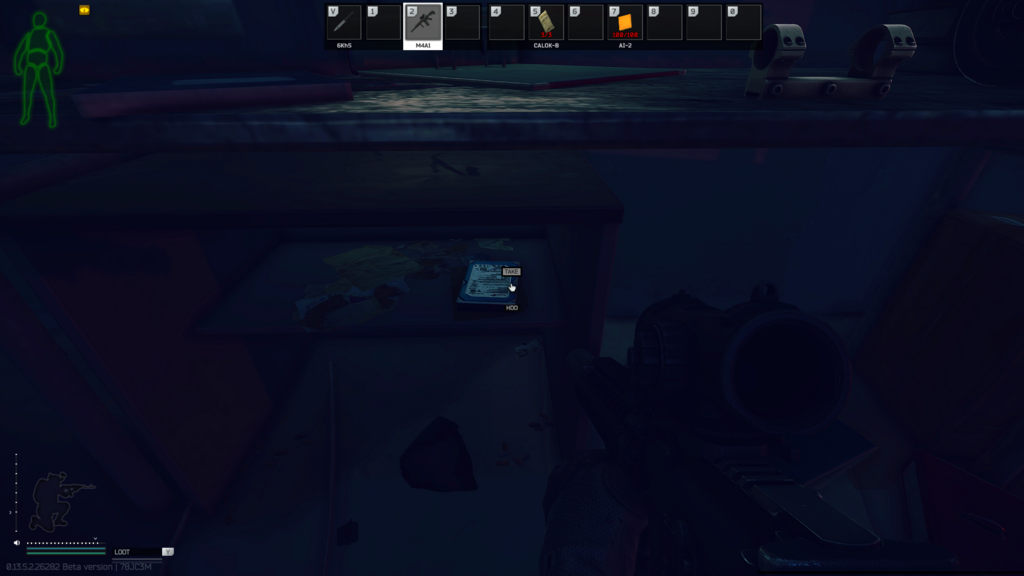 湧き位置について その1 コーナーデスクの左側の下にあるコンピューターの上。(上記攻略のヒントの場所)その2 デスクトップとコーナーデスクの右側の引き出しの間。 その3 左奥の金庫のピザの箱の中。 その4 右側のデスクの下の仕切り 参考:https://escapefromtarkov.fandom.com/wiki/Surveillance